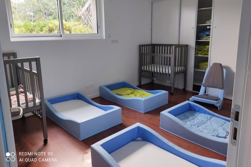 - 2 grands dortoirs : un pour les bébés avec des lits à barreaux, un pour les plus grands avec des lits couchettes. Les turbulettes, couvertures et les draps sont fournis par la structure.